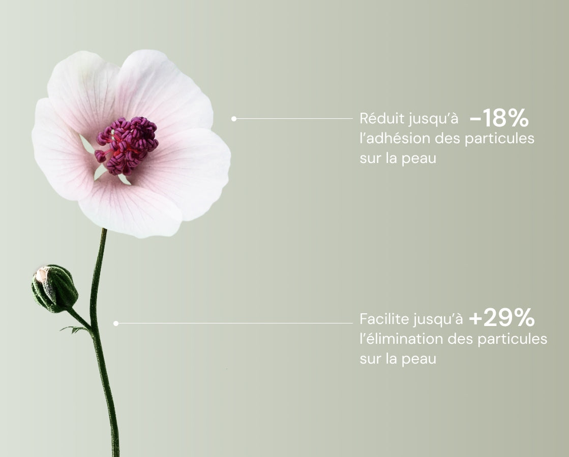 La fleur de guimauve bio agit comme un véritable bouclier naturel contre les particules extérieures.